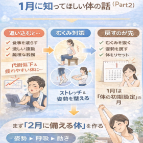首や肩の疲れ、腰の重さ、柔軟性の低下など、身体の不調を根本から整えます。