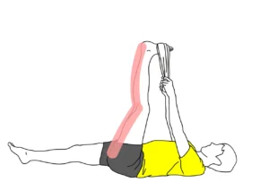太ももの裏が硬いと骨盤が後傾し、猫背や腰痛につながります。タオルを使った仰向けストレッチが効果的です。