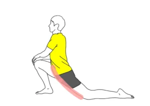 股関節の前側にある腸腰筋が硬くなると、骨盤が前傾し腰に負担がかかります。ランジ姿勢で伸ばすことで腰の圧迫を軽減できます。